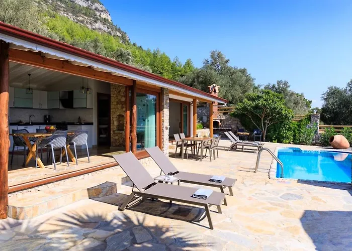 Dalaman luchthaven ligt circa 80 km verderop. Deze villa is ook voorzien van Wi-Fi in de hele accommodatie. De 2-badkamer accommodatie beschikt onder andere over een toegang tot een zwembad.